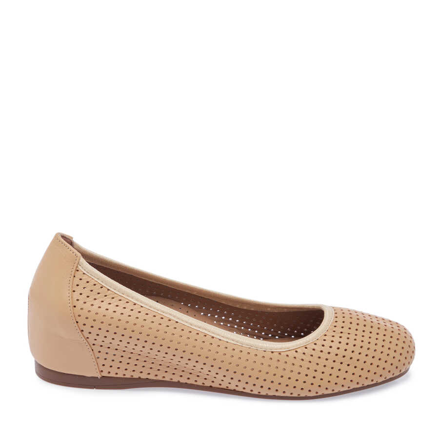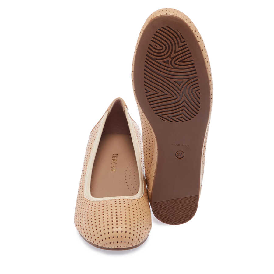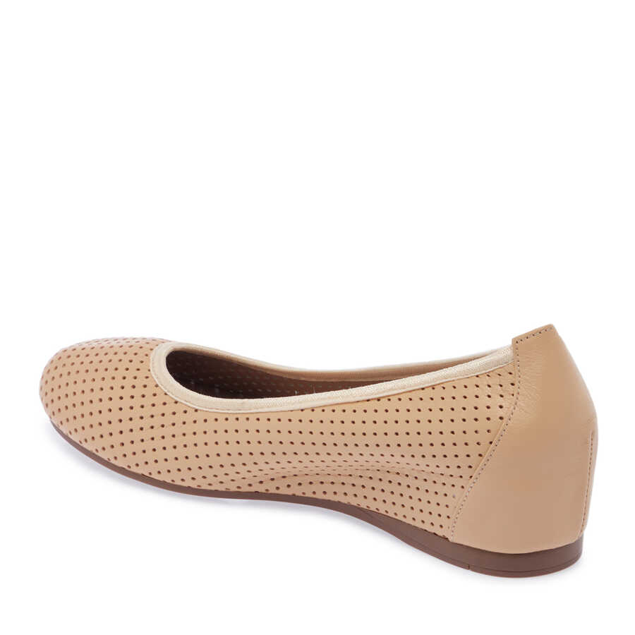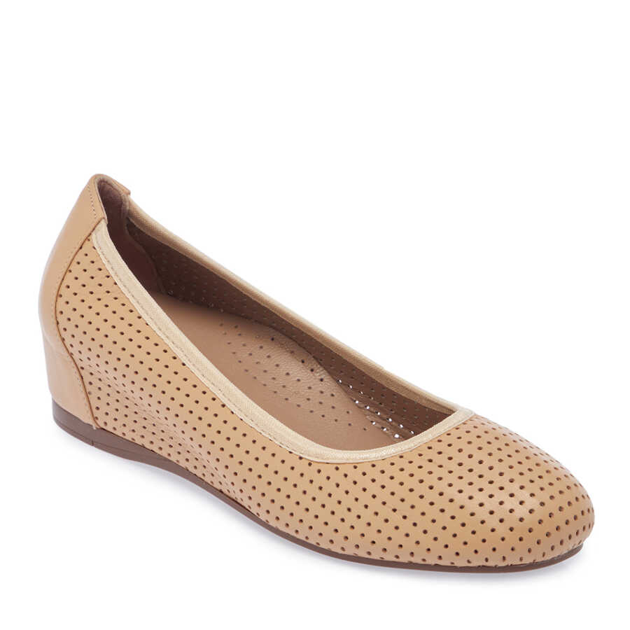 Bej Hakiki Deri Kadın Dolgu Topuklu Ayakkabı - K24I1AY67302-K40