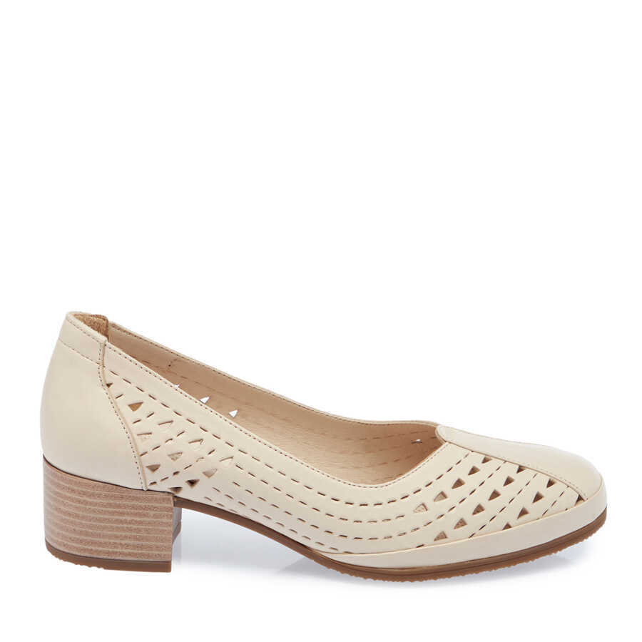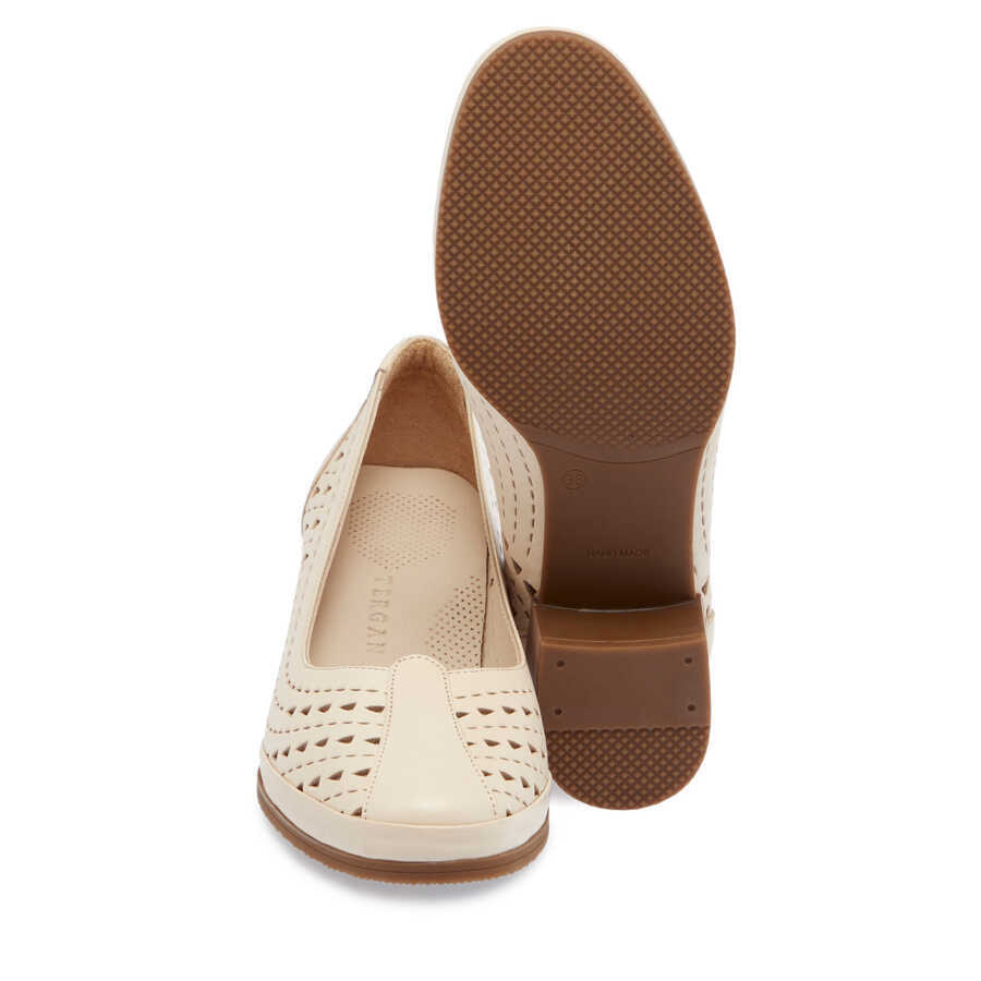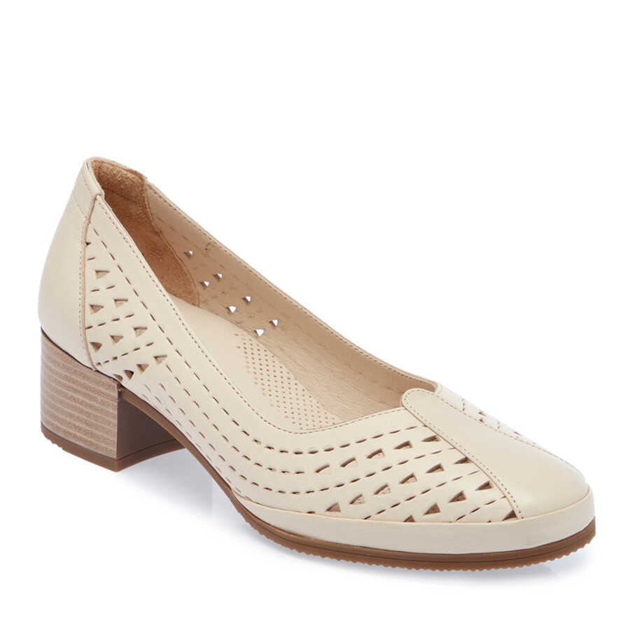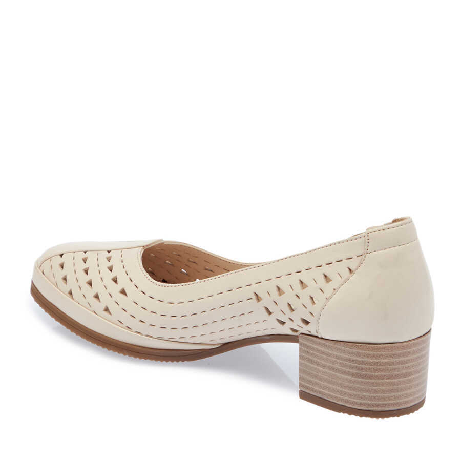 Bej Deri Kadın Topuklu Ayakkabı - K24I1AY67106-A25