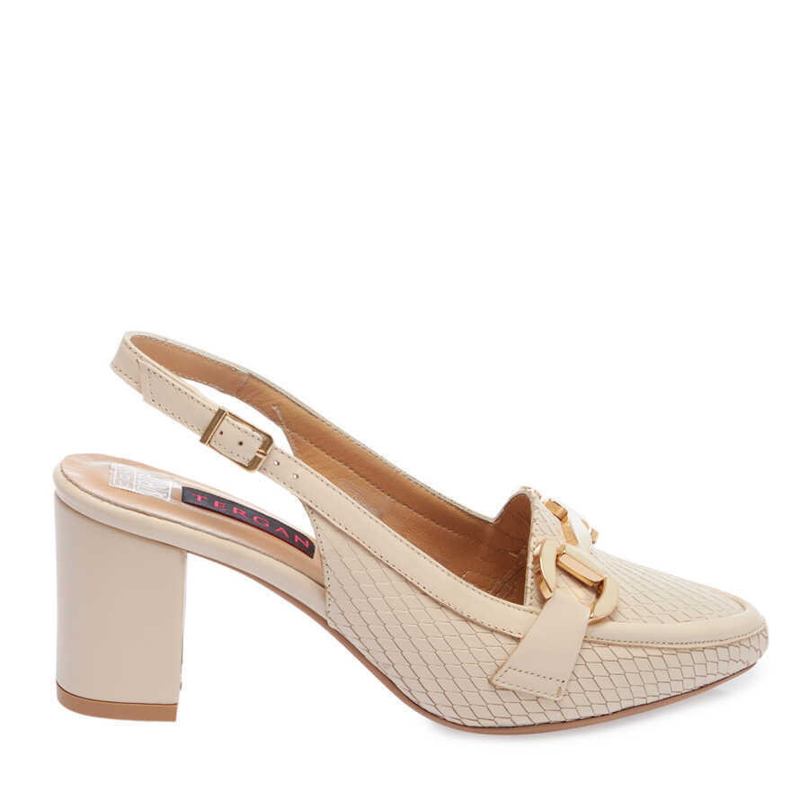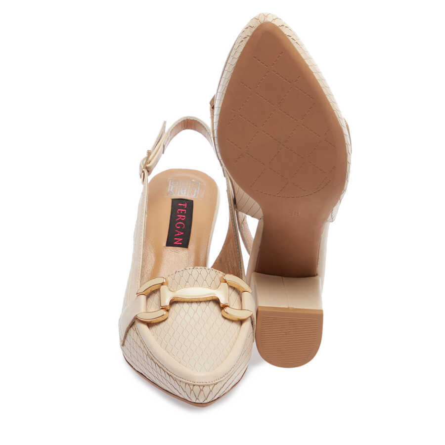 Bej Deri Kadın Topuklu Ayakkabı - K24I1AY67293-Q5V