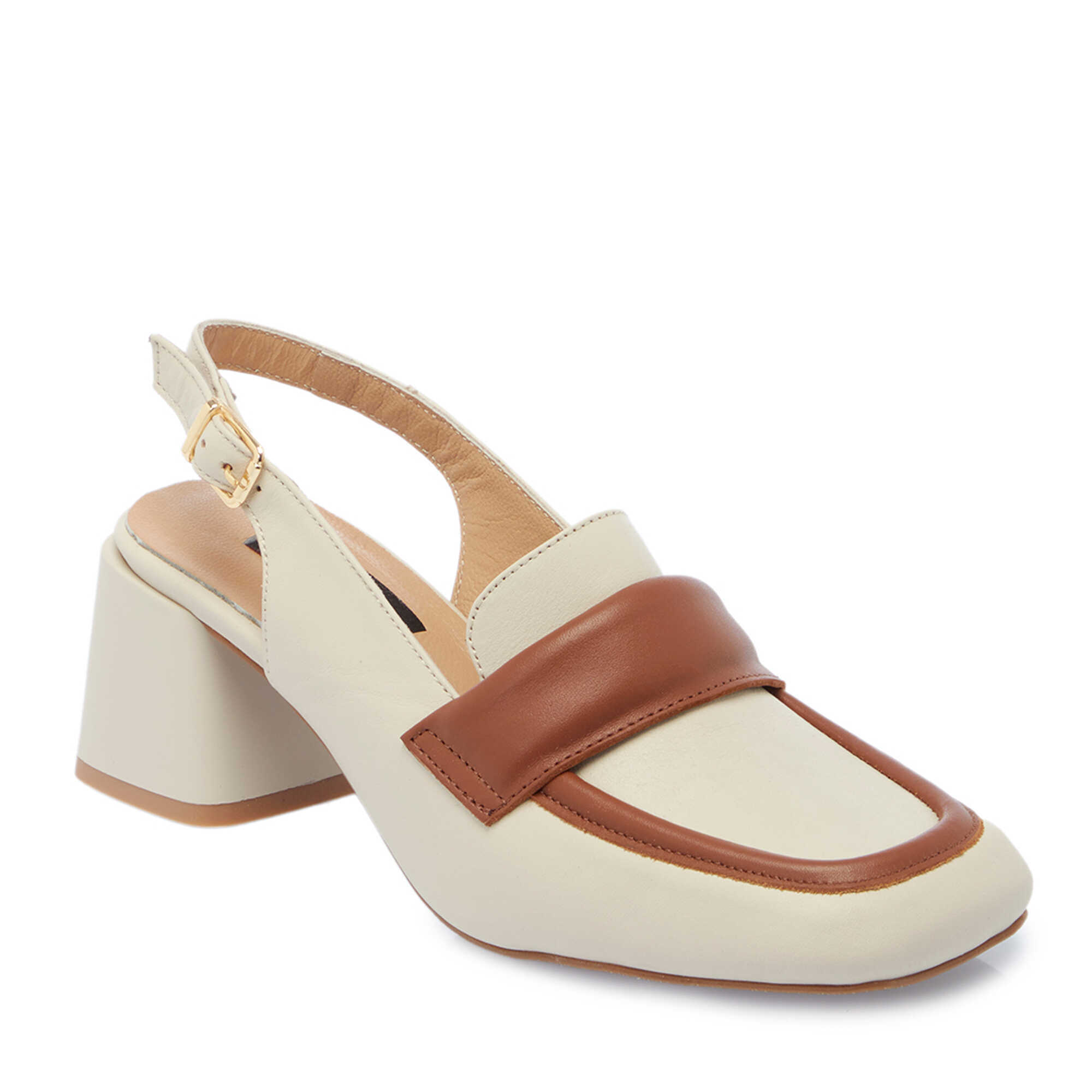 Bej Deri Kadın Topuklu Ayakkabı - K25Y1AY67909-A25