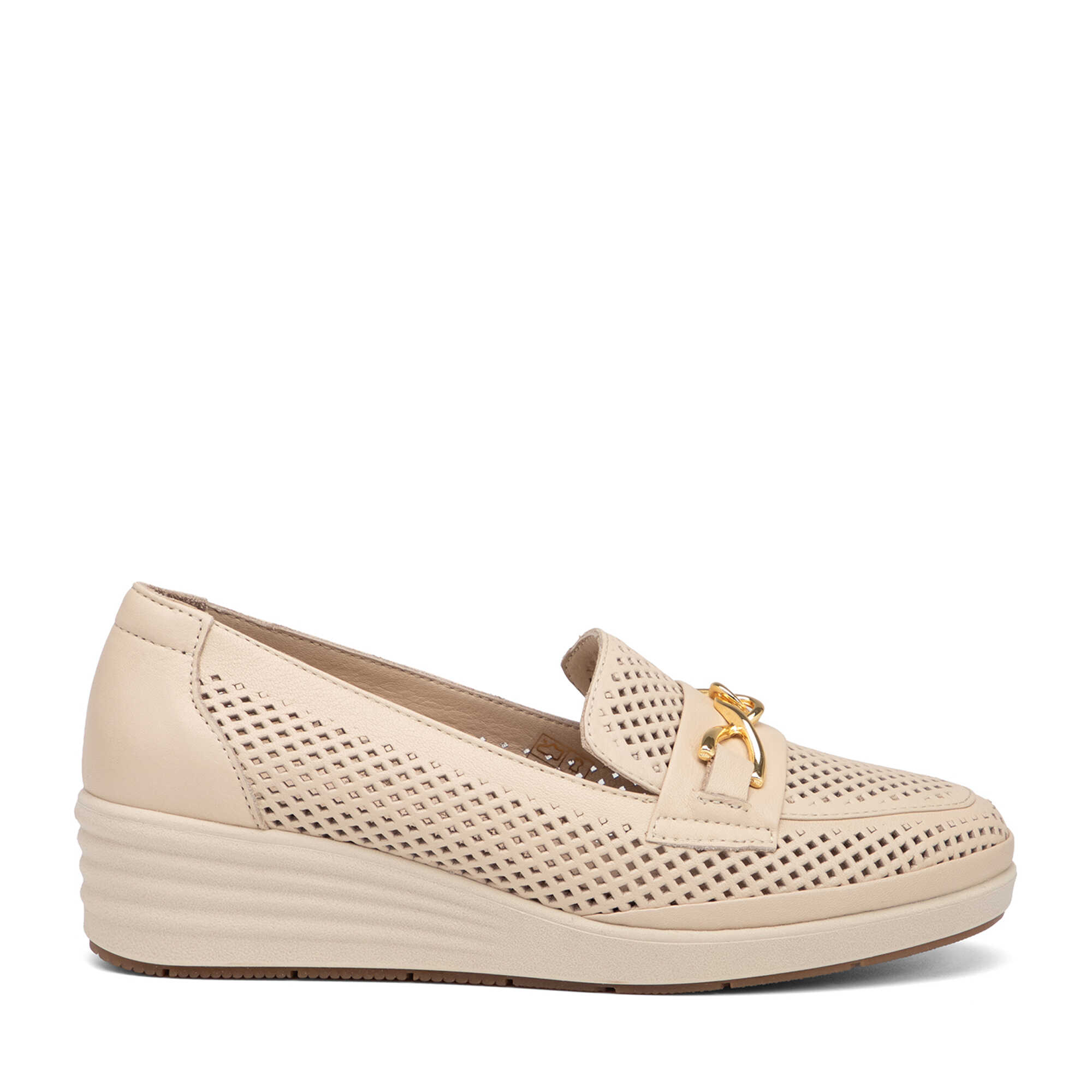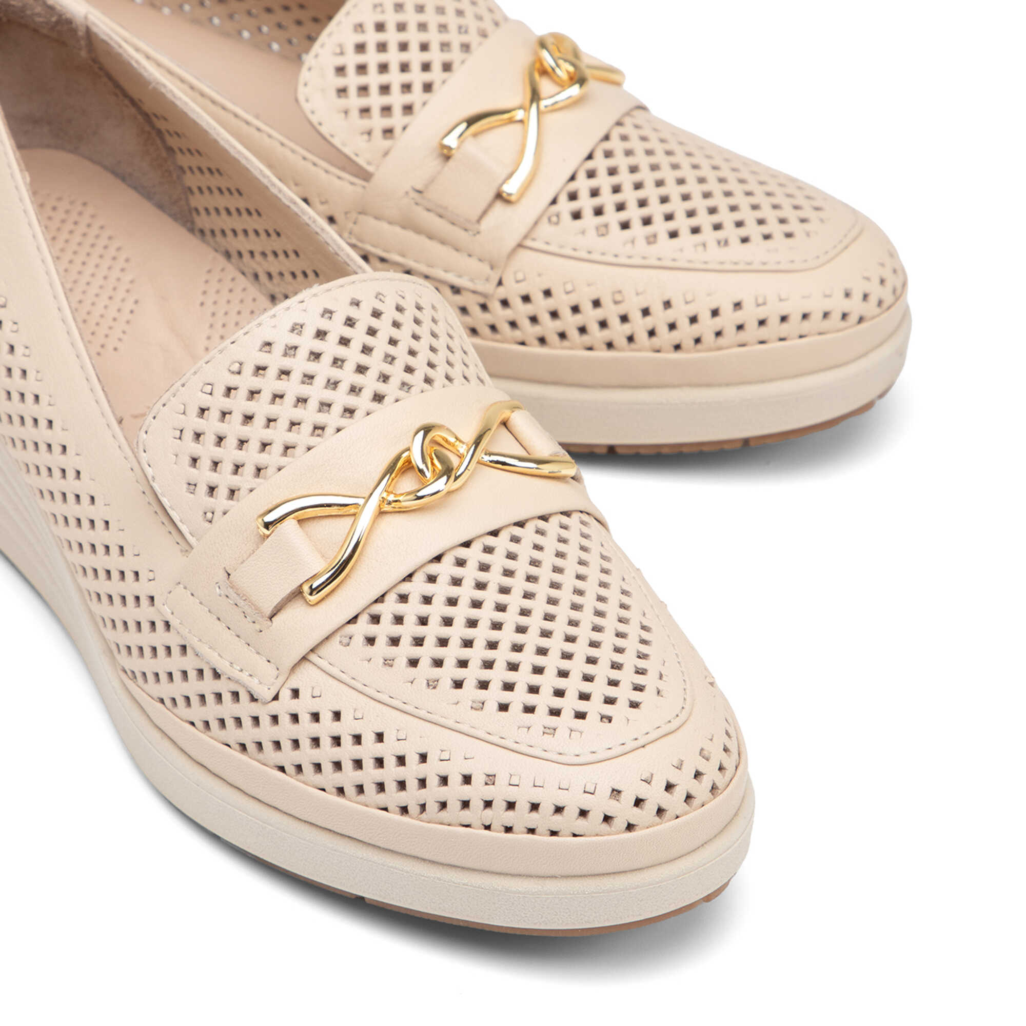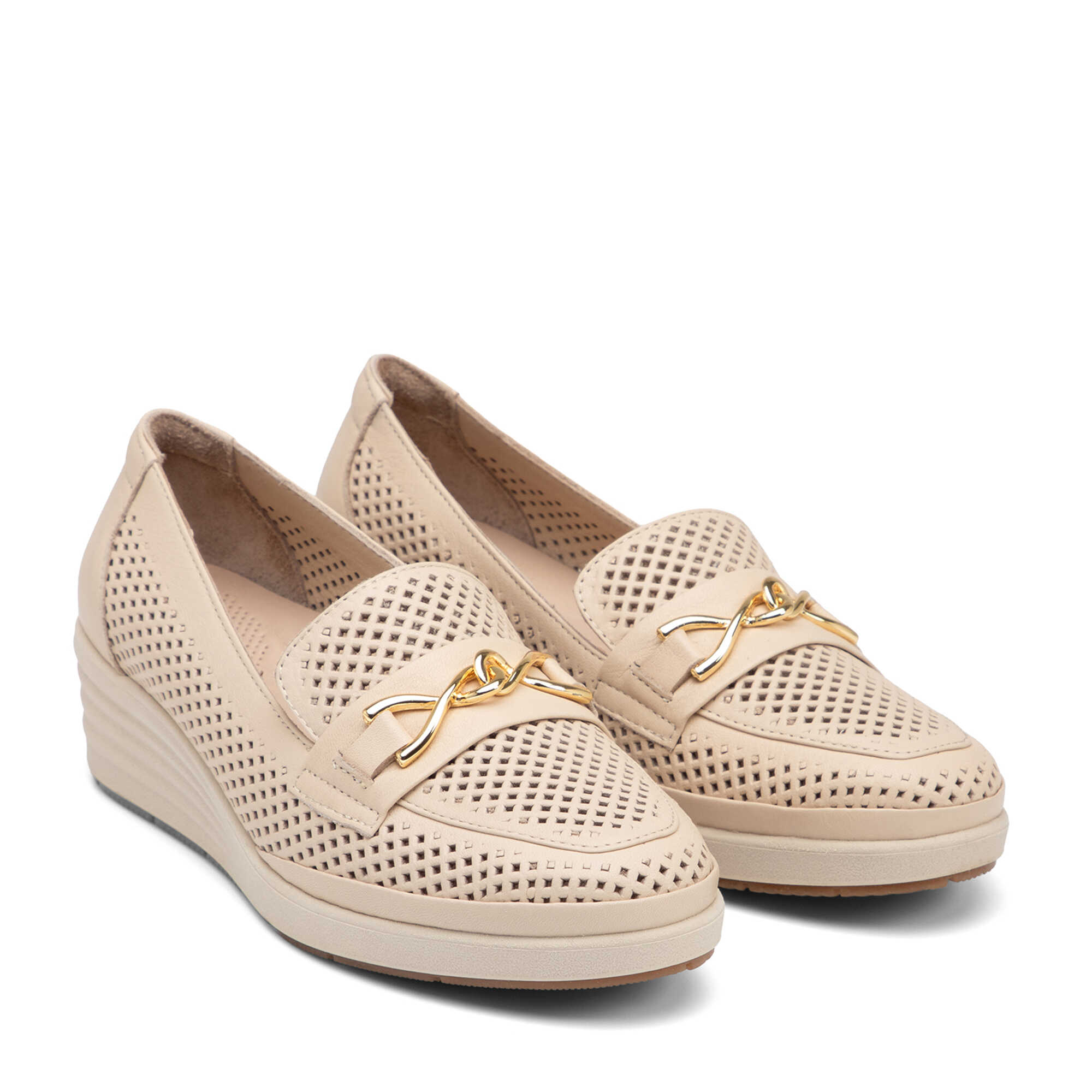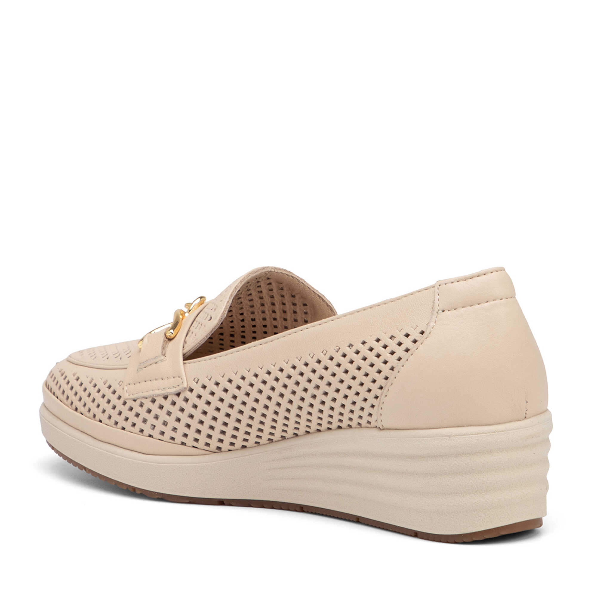 Bej Hakiki Deri Kadın Dolgu Topuklu Ayakkabı - K26I1AY68598-A25