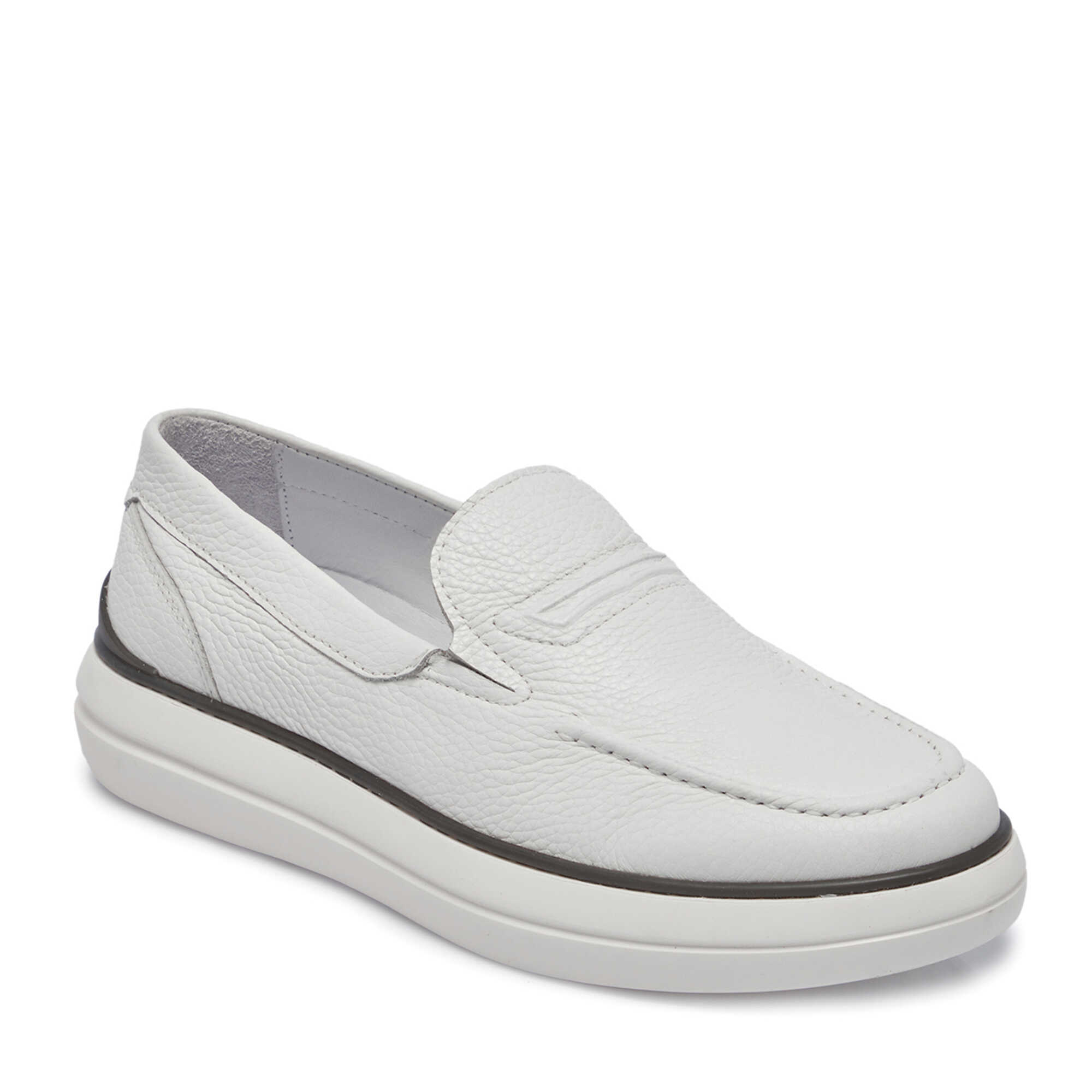 Beyaz Hakiki Deri Erkek Casual Ayakkabı - E25I1AY57213-A26