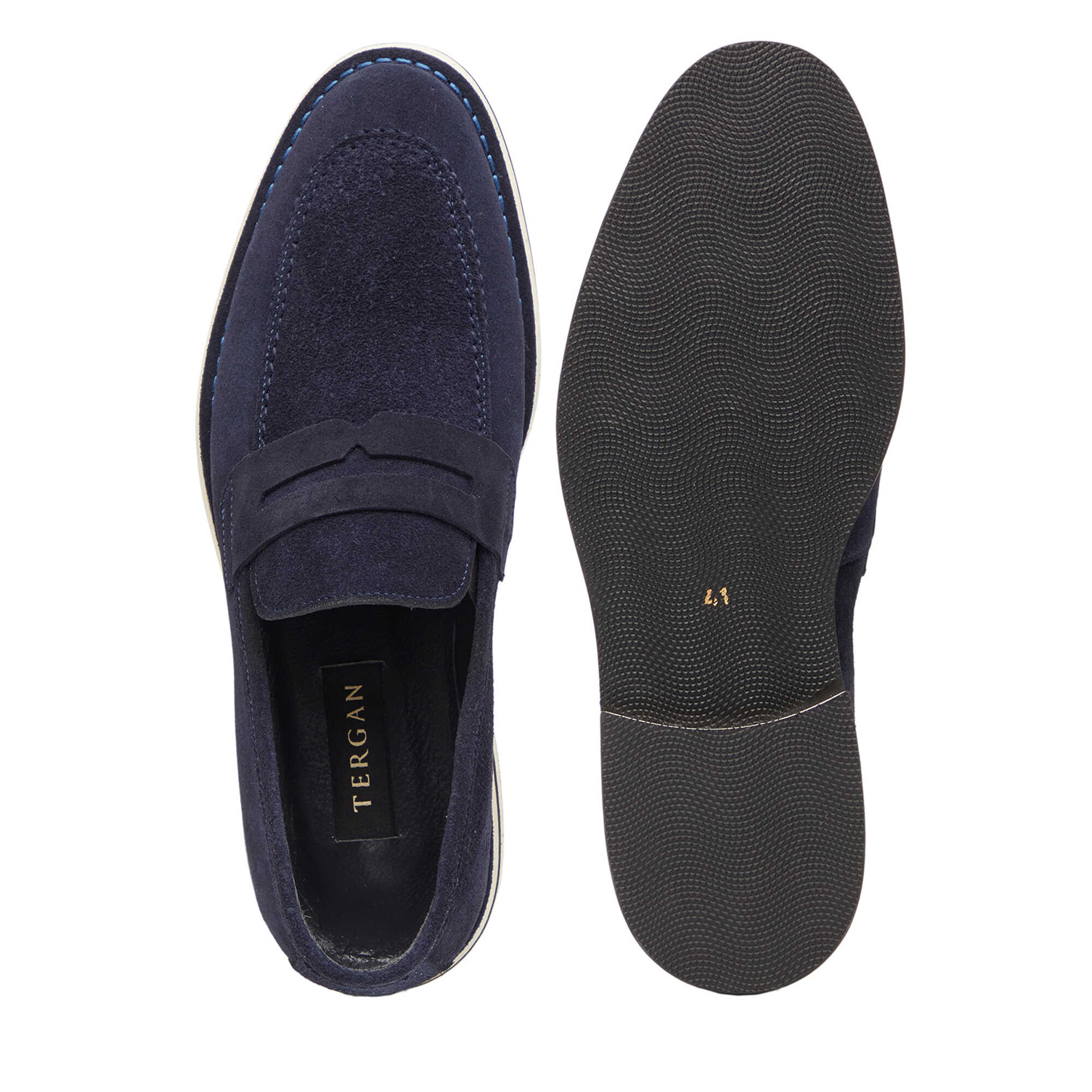 Lacivert Hakiki Süet Deri Erkek Loafer - E26I1AY57683-D44