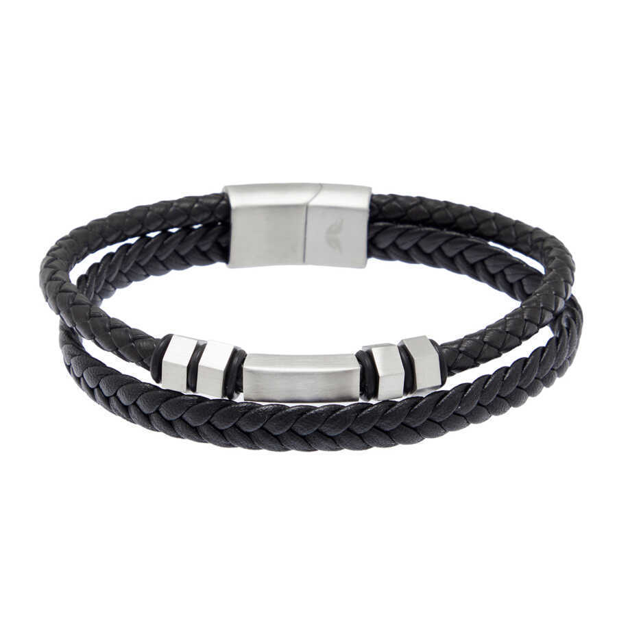 Platin Deri - Çelik Erkek Bileklik - E1BLK0410424-S0X