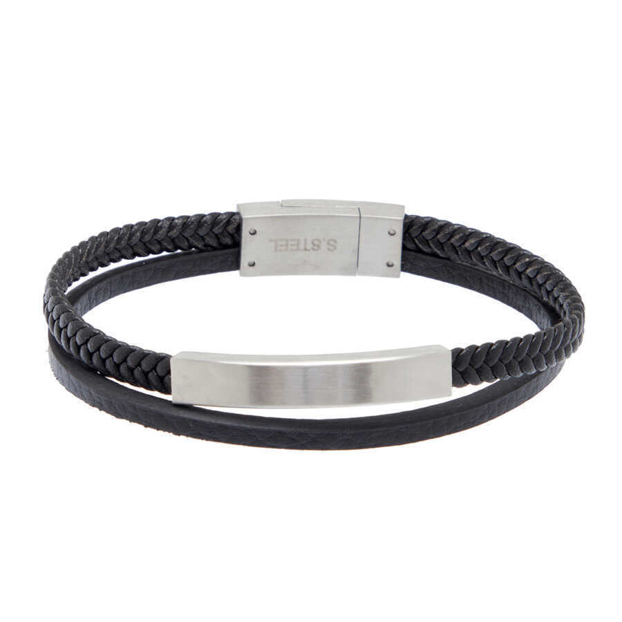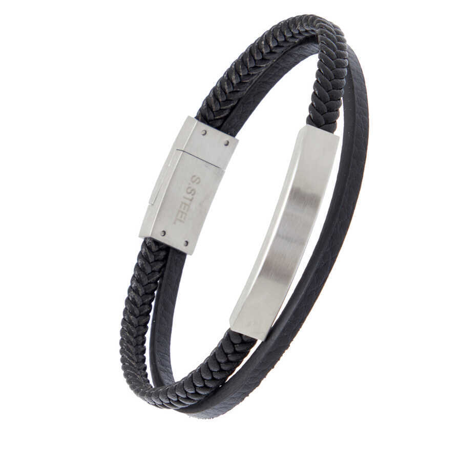 Siyah Deri - Çelik Erkek Bileklik - E1BLK0410441-U0P