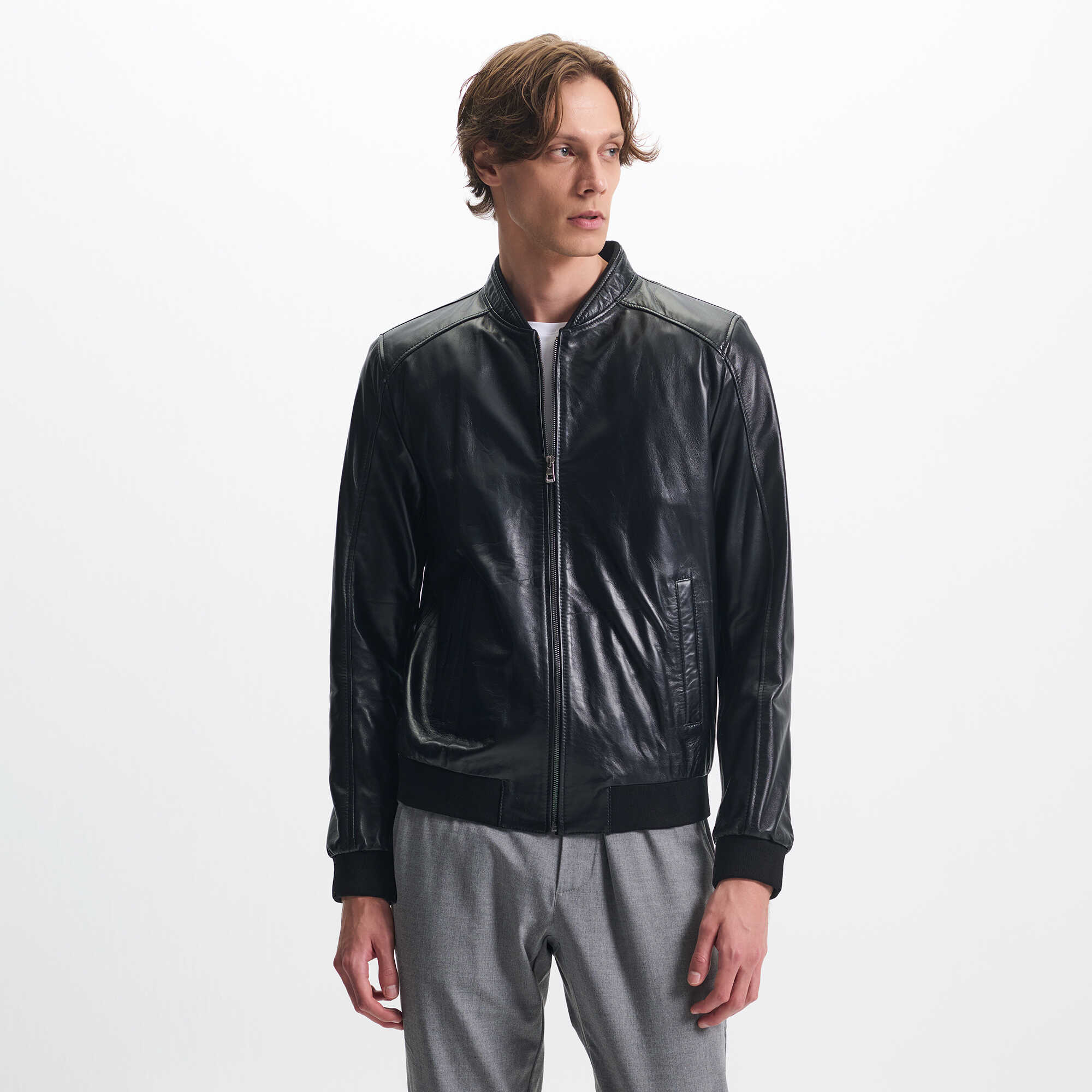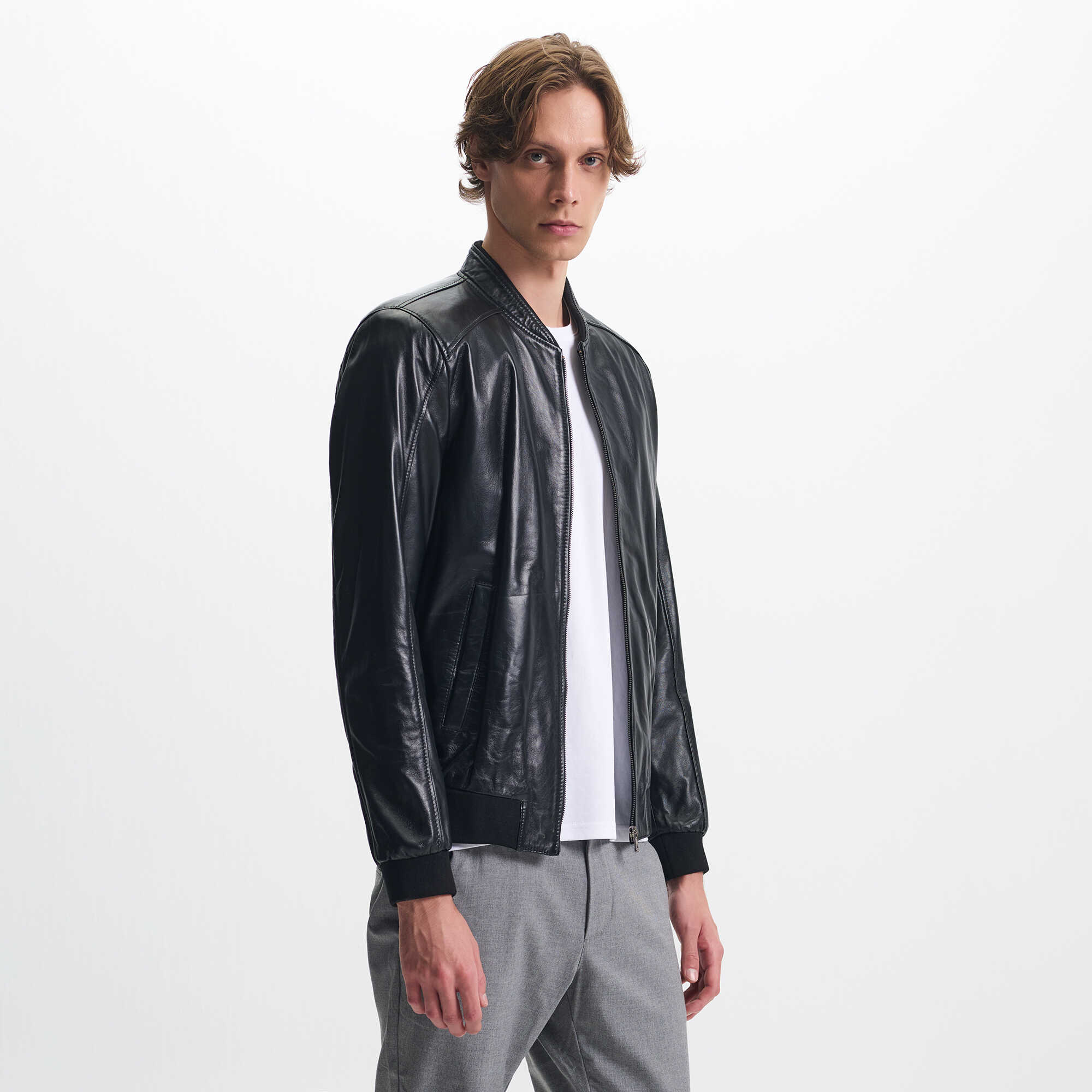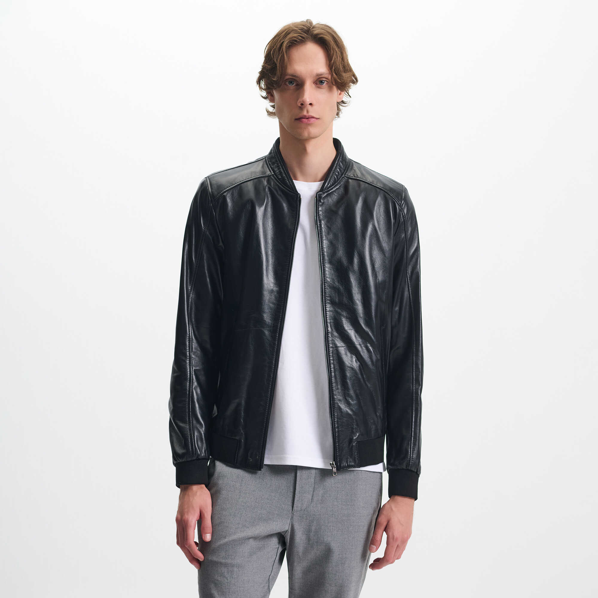 Siyah Deri Erkek Deri Mont - E25KDM310609-Q3H