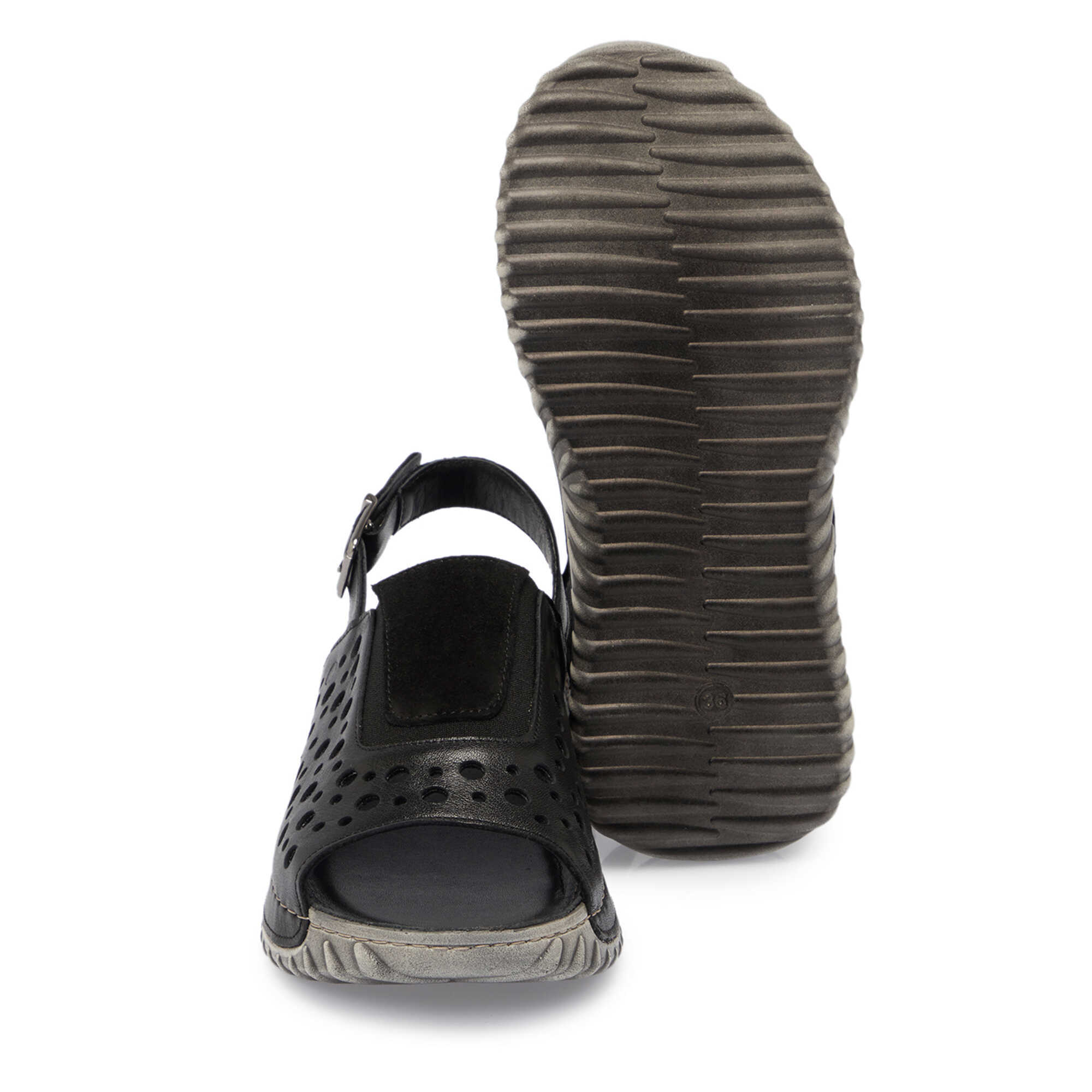 Siyah Hakiki Deri Kadın Sandalet - K25Y1SN67929-A23