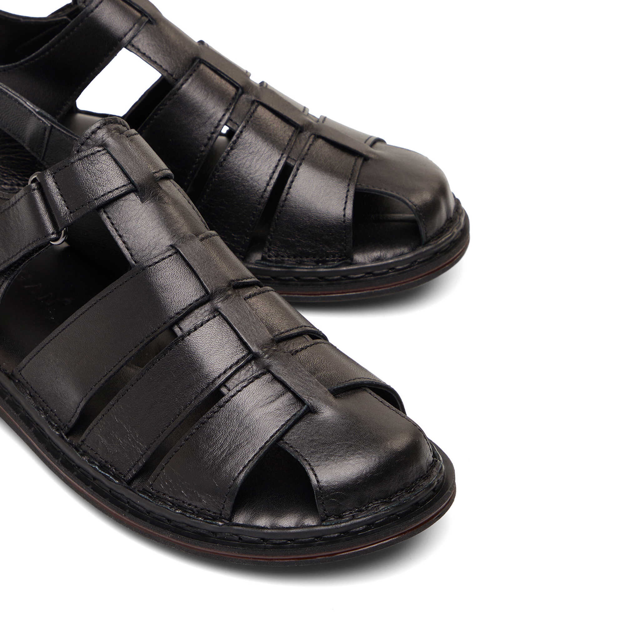 Siyah Hakiki Deri Erkek Sandalet - E26Y1SN57608-A23