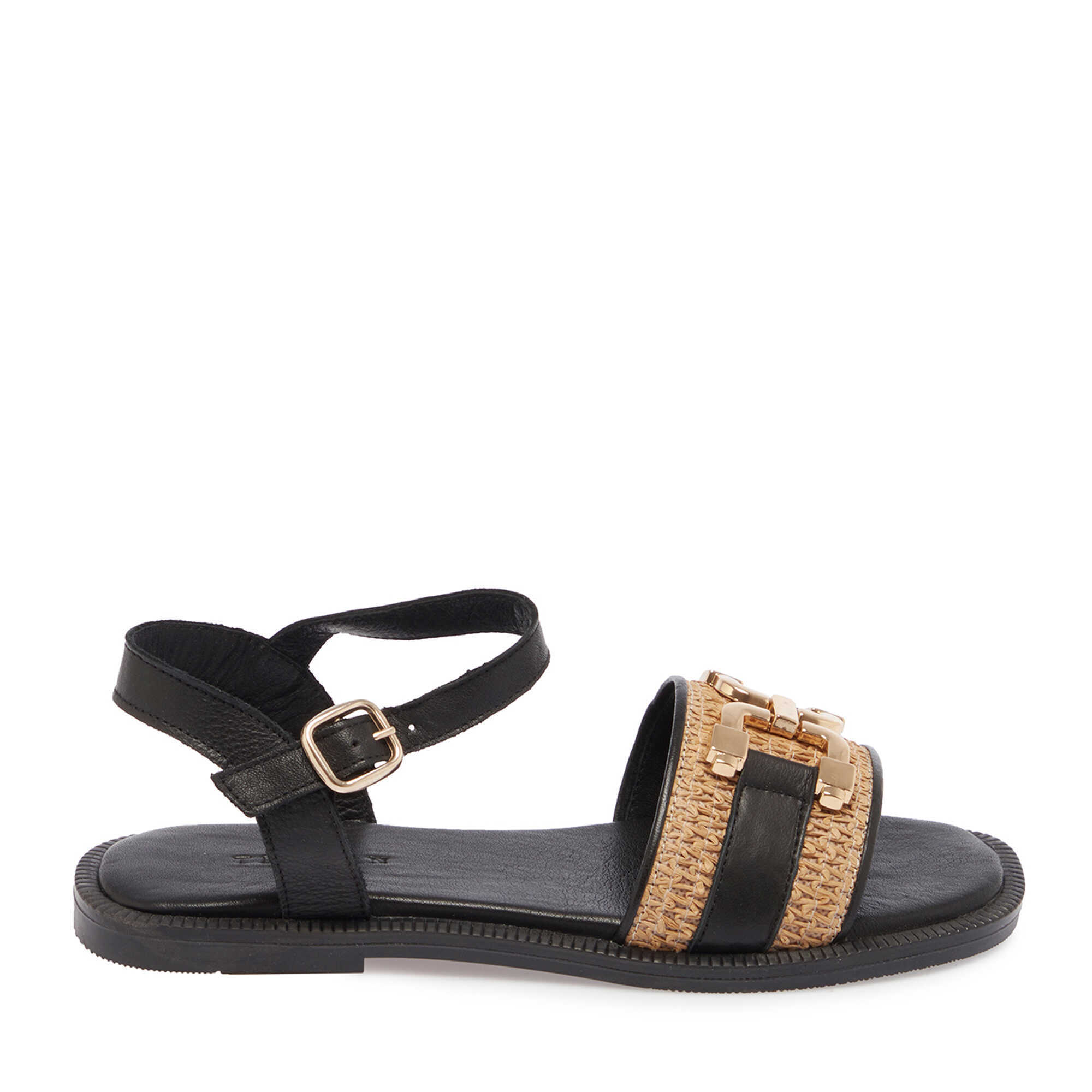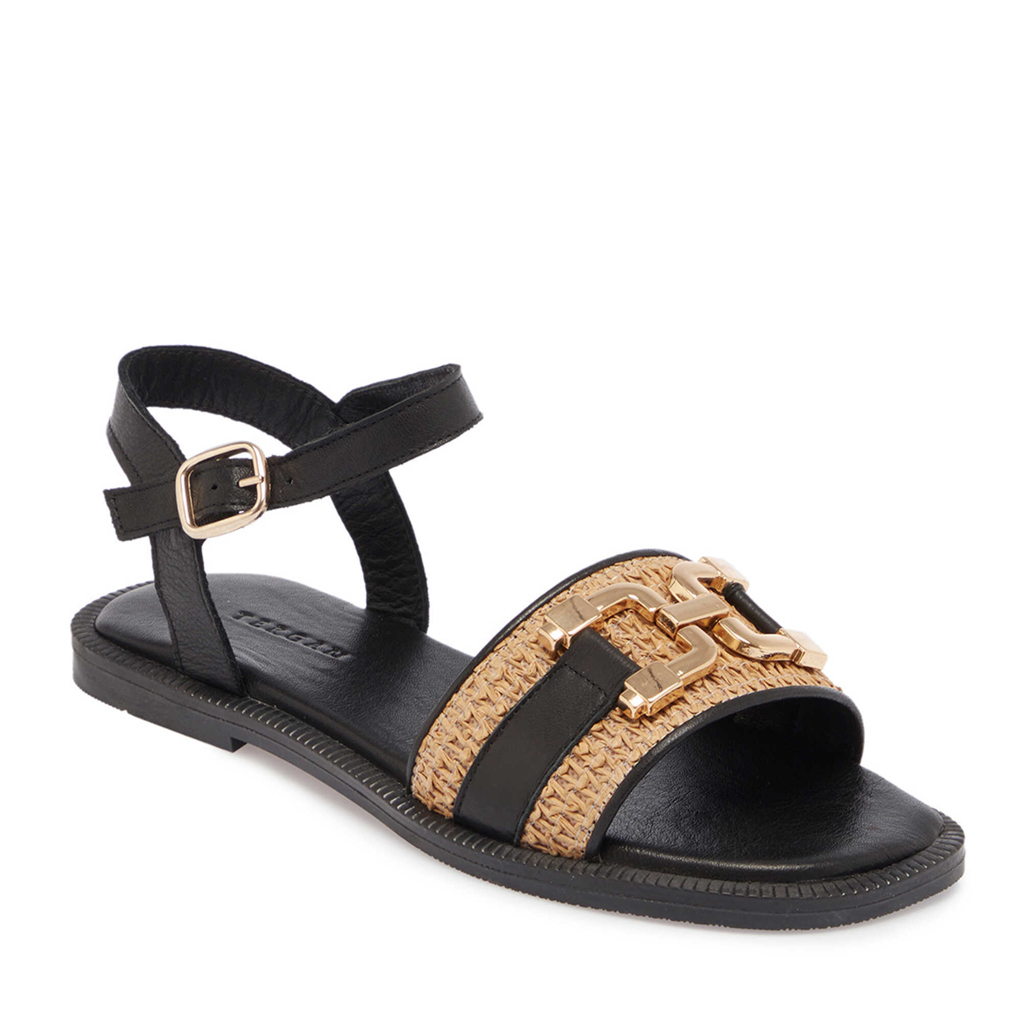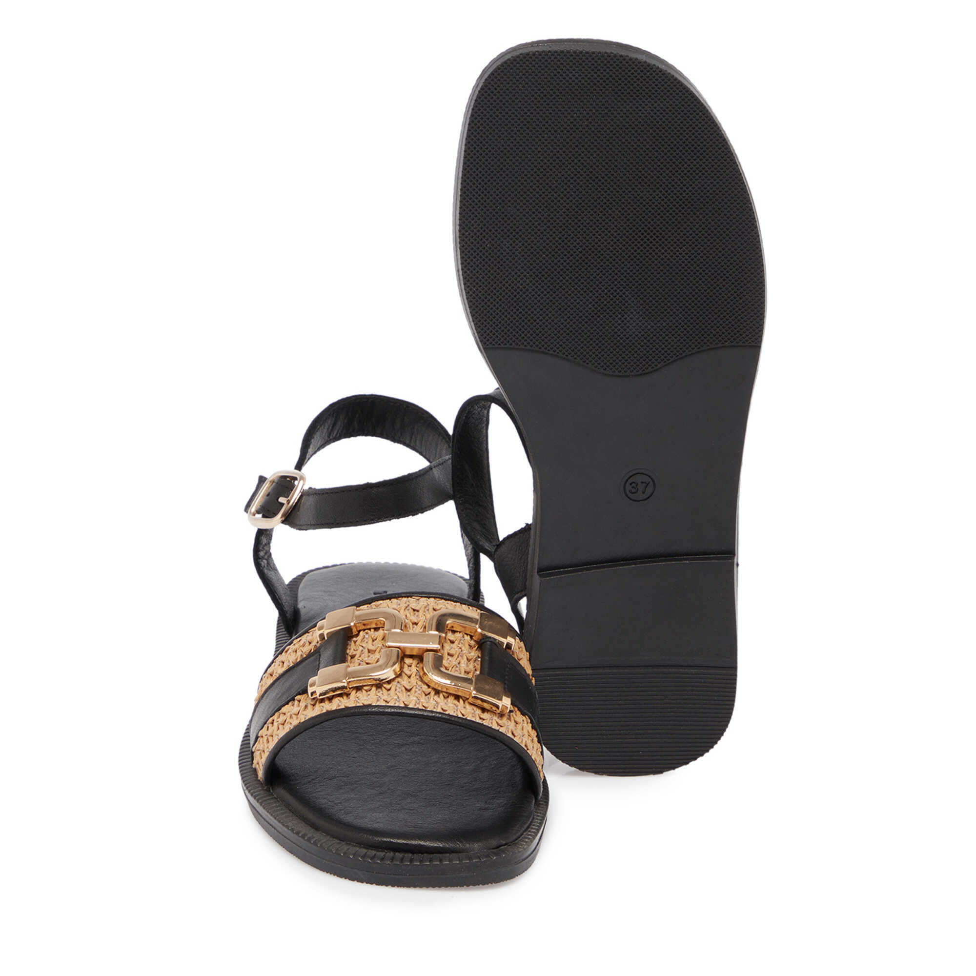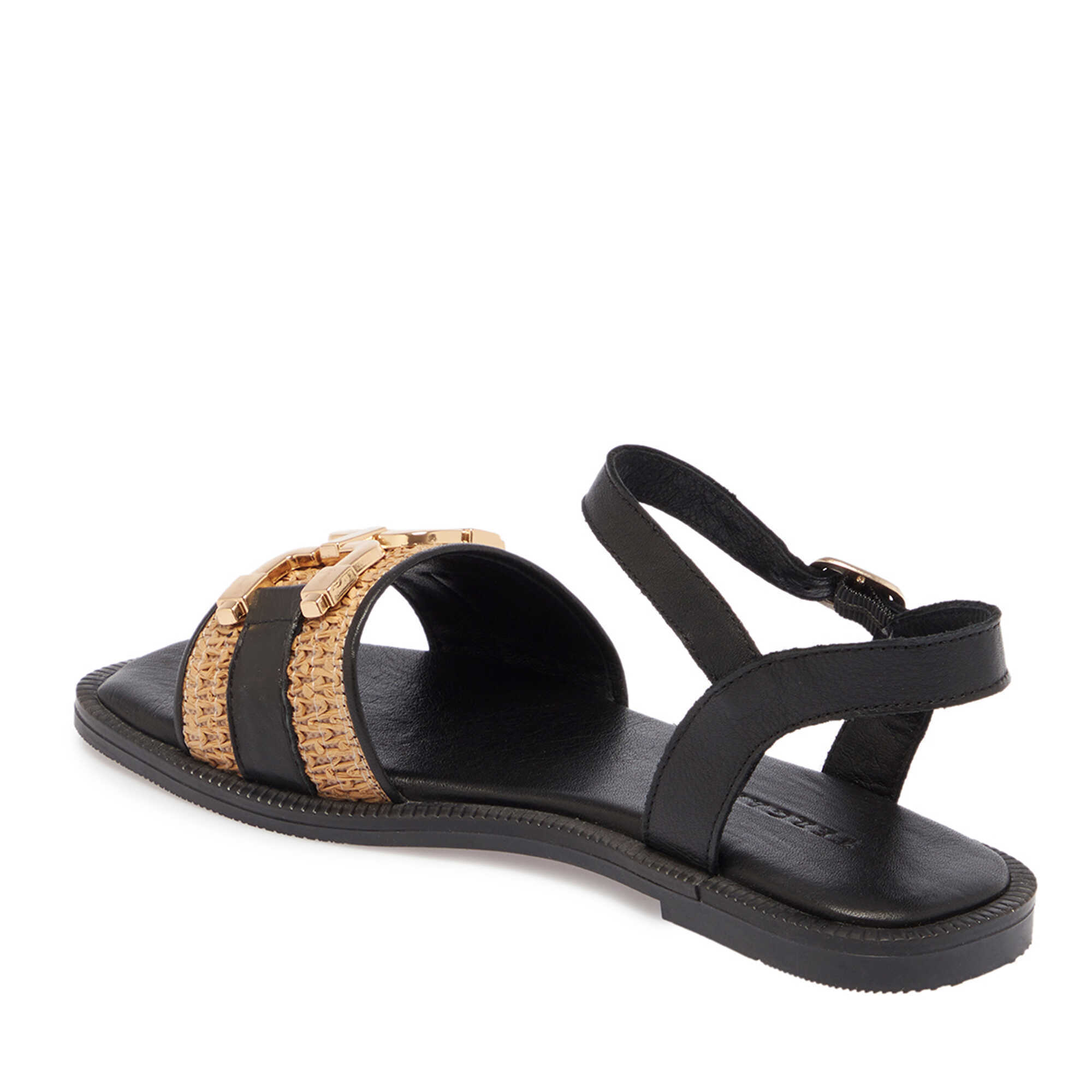 Siyah Hasır - Deri Kadın Sandalet - K25Y1SN68109-A23